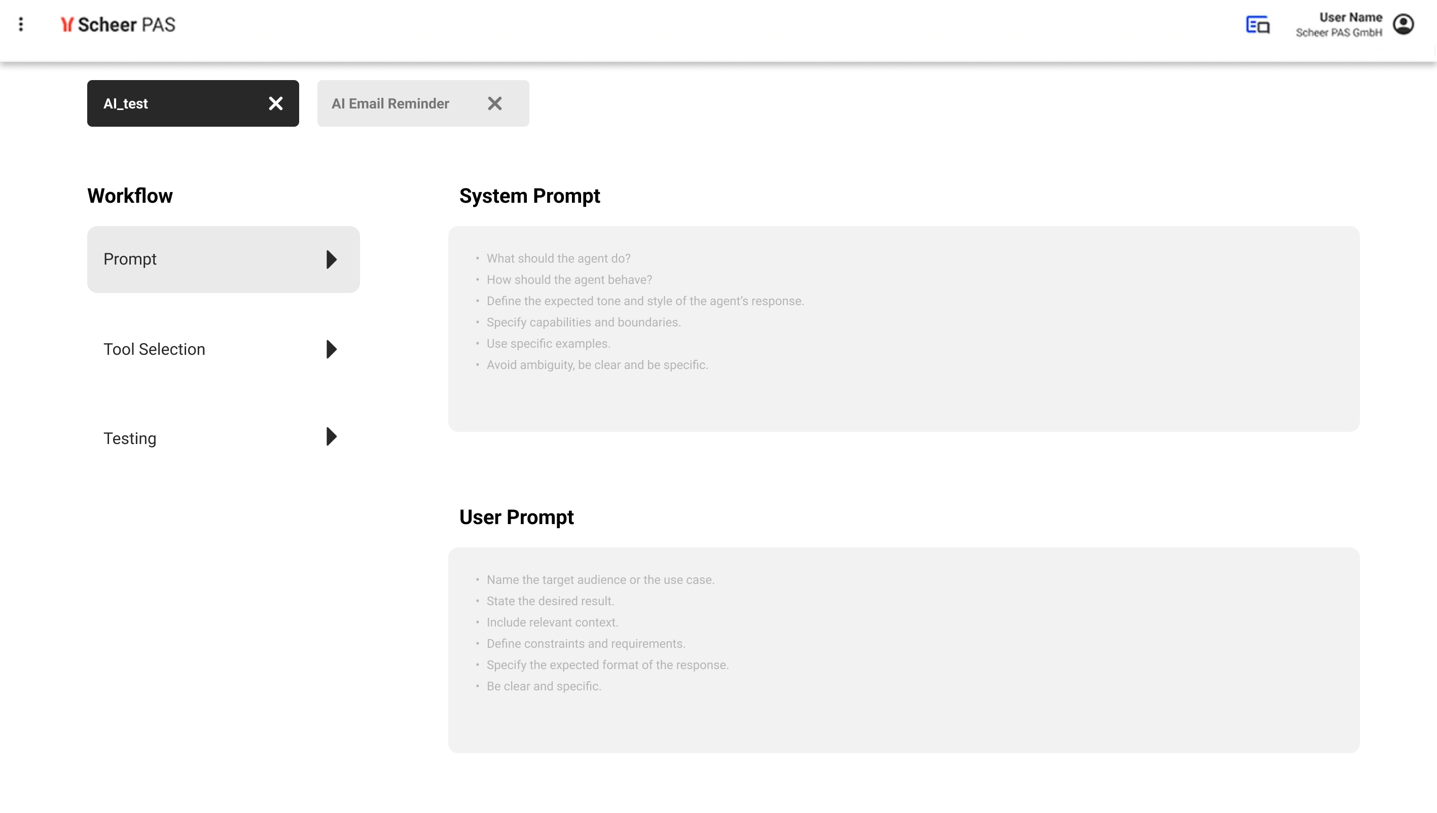 Der Einsatz von Scheer PAS AI Agents ist so unkompliziert wie das Festlegen von Aufgabenstellungen oder Verhalten und die nahtlose Einbindung in bestehende Prozesse. Die Einrichtung gelingt schnell über Prompts und die Beschreibung des erwarteten Anwenderverhaltens.